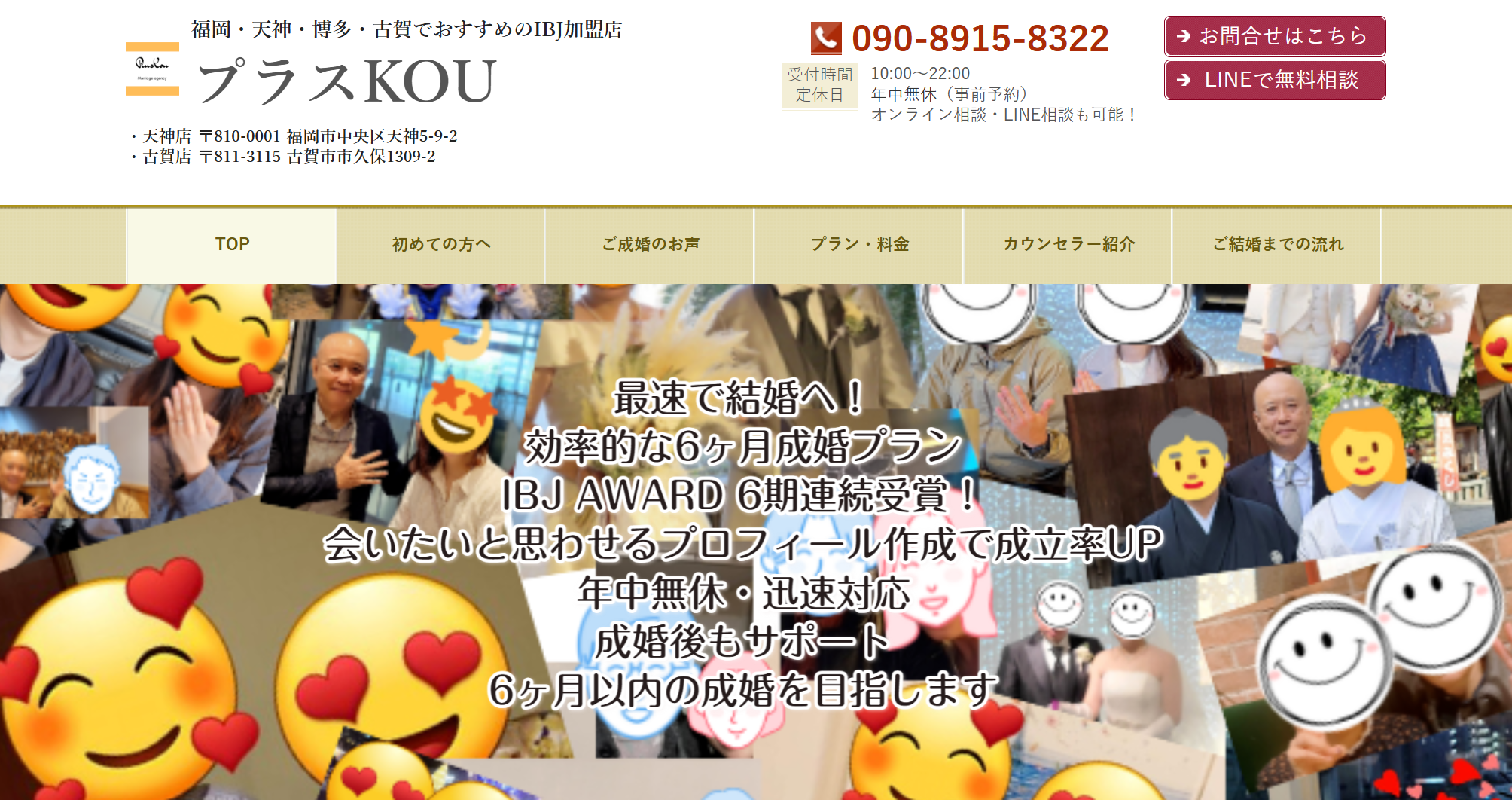 プラスKOUは「6ヶ月以内の成婚」を目標としたサポート体制を整えています(IBJサイト特集から)。